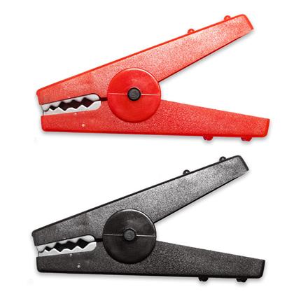 The BU-112-02 is a kit containing one red and one black insulated miniature auxiliary clip with a built-in male 0.25" x 0.032" quick connect terminal.