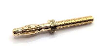 Mueller's Banana Plug, Metric Sized, Threaded studs for quick and easy mounting, Mates with standard banana jack sizes. 4MM plug size, M4 thread size, 20MM thread length, 35A, 40.5MM length.